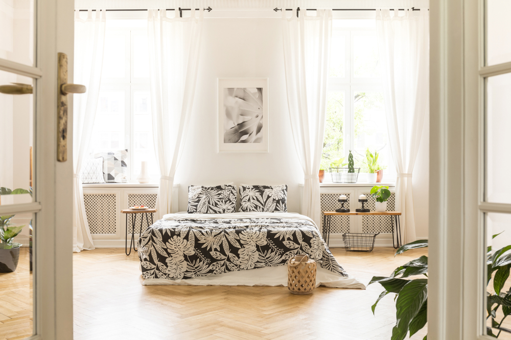 Una dintre cele mai importante reguli feng shui în dormitor este de a lăsa lumina naturală să pătrundă în voie în cameră, însă fără să cadă direct pe pat, deoarece acesta va fi supraîncărcat energetic. Optează pentru ferestre cât mai mari și alege perdele transparente, dar și draperii din materiale subțiri, prin care să pătrundă lumina!